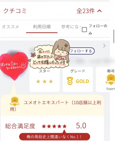 いっぱいですが、チャットくれたお兄様は基本優先してご予約取らせて頂いてますので出勤なくても気軽に聞いてくださいね!