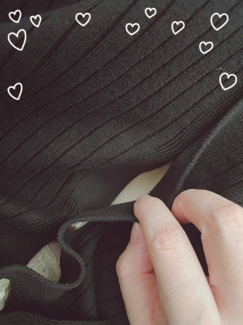 ボタンのスキマから今日のパンティと太もも❤️